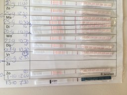 "Dit was mijn test die ik heb gedaan ik zag dat ik alleen 2 dagen 2 dikke strepen had maar het wil me nog steeds niet lukken om zwanger te worden "